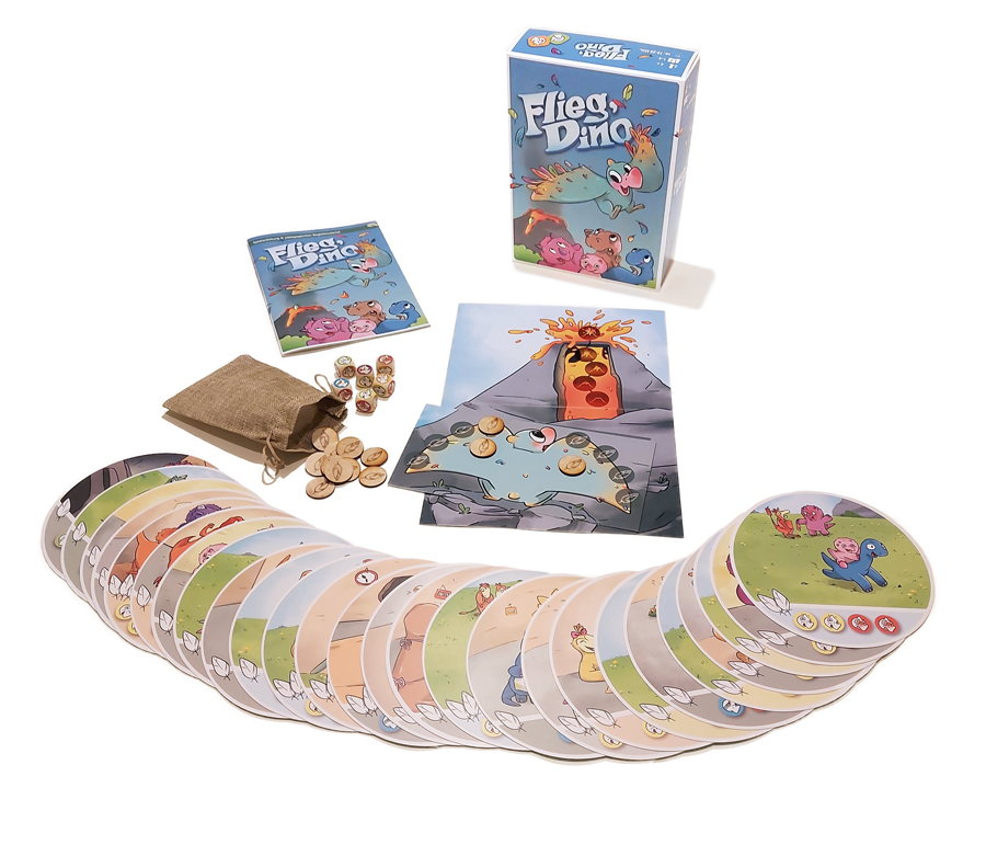 „Flieg, Dino!“, Spiel für Kinder ab 4 Jahren, entstanden in der Zusammenarbeit von NACOA Deutschland e. V. (Hanna Rosebrock, Andrea Landmann) und playing history, Preis: 29,00 € (zzgl. Versand)