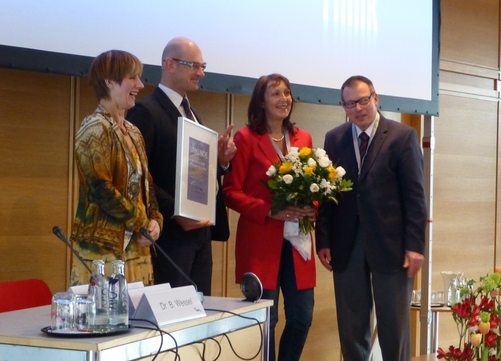 Dr. Wibke Voigt, Vorstandsvorsitzende des buss, die Preisträger Prof. Dr. Ulrich Zimmermann und Heidi Kuttler (der dritte Preisträger Cornelius Groß war nicht anwesend), Dr. Bernd Wessel, stellvertretender Vorsitzender des buss