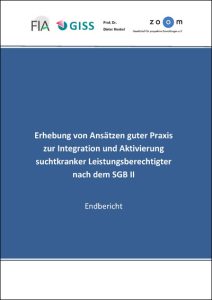 Das Bundesministerium für Gesundheit (BMG) schrieb im Oktober 2015 das Forschungsvorhaben „Erhebung von Ansätzen guter Praxis zur Integration und Aktivierung suchtkranker Leistungsberechtigter nach dem SGB II“ öffentlich aus. Es handelte sich um eine Folgestudie: Schon im Jahr 2007 ließ das BMG erstmals Ansätze guter Praxis bei der Integration abhängigkeitskranker Arbeitsuchender ins Erwerbsleben im Rahmen des SGB II untersuchen. Die Ergebnisse dieses ersten Forschungsvorhabens wurden 2009 vorgelegt (Henke et al. 2009). Im Rahmen einer weiteren wissenschaftlichen Studie sollten 2016 erneut Maßnahmen erhoben werden, welche die Jobcenter im Rahmen des SGB II für Menschen mit Suchtgefährdung oder Suchterkrankung getroffen haben. Dabei sollte auch erfasst werden, wie die Schnittstelle zum Gesundheitssystem durch die Jobcenter gestaltet wird und welche Angebote für junge Erwachsene unter 25 Jahren sie vorhalten. Die Forschungsfragen sollten durch eine möglichst vollständige Erhebung bei allen Jobcentern sowie Fallstudien an ausgewählten Standorten empirisch untersucht werden.