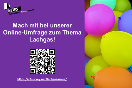 Um auch die Perspektive der Konsumierenden (ab 16 Jahren) einzubeziehen, bittet das NEWS-Team Sie auch, den folgenden Link zu einer Online-Befragung für Konsumierende in Ihrem Netzwerk zu teilen: https://s2survey.net/lachgas-users/