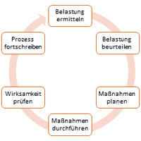 Mit Blick auf das in Teil I des Artikels eingeführte Prozessmodell lässt sich zusammenfassen, dass die AG die Belastungen, die sich in den Befragungsergebnissen und den Workshop-Protokollen zeigen, beurteilt. Sie prüft die Maßnahmenvorschläge und entscheidet, ob sie umgesetzt werden sollen oder nicht. Bei Bedarf werden zusätzliche Maßnahmen geplant. Je nach Sachlage erfolgt die Umsetzung durch die Teilnehmer der AG oder es werden weitere Kolleg/innen einbezogen. Die Wirksamkeit wird, soweit sinnvoll, im Verlauf geprüft. Den Schlusspunkt und gleichzeitig Neustart des Prozesses bildet dann die erneute Gefährdungsanalyse nach ca. drei Jahren.