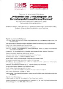 Die Deutsche Hauptstelle für Suchtfragen e.V. und der Fachverband Medienabhängigkeit e.V. haben gemeinsam das Ergebnispapier „Problematisches Computerspielen und Computerspielstörung (Gaming Disorder). Bestandsaufnahme und Positionierung in den Bereichen Prävention und Frühintervention, Beratung, Behandlung und Rehabilitation sowie Forschung“ erarbeitet und veröffentlicht.