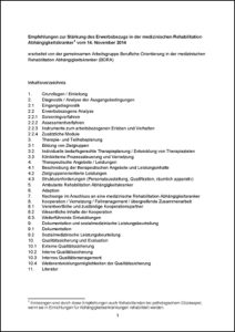- BORA-Empfehlungen (2014): Empfehlungen zur Stärkung des Erwerbsbezugs in der medizinischen Rehabilitation Abhängigkeitskranker vom 14. November 2014, erarbeitet von der gemeinsamen Arbeitsgruppe Berufliche Orientierung in der medizinischen Rehabilitation Abhängigkeitskranker (BORA). Online verfügbar unter: https://www.deutsche-rentenversicherung.de/DRV/DE/Experten/Infos-fuer-Reha-Einrichtungen/Grundlagen-und-Anforderungen/Konzepte-und-Positionspapiere/konzepte_positionspapiere.html