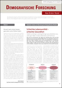 Viele Menschen wünschen sich ein langes, gesundes und erfülltes Leben. Ob und inwieweit dieser Wunsch in Erfüllung geht, hängt von vielen externen und individuellen Faktoren ab. Die neue Ausgabe des Magazins „Demografische Forschung. Aus Erster Hand“ beschäftigt sich mit den Auswirkungen des Lebensumfeldes auf die Gesundheit, vermeidbaren Ursachen für verbleibende Sterblichkeitsunterschiede zwischen Ost- und Westdeutschland und einer Diskussion über die Lücke zwischen Kinderwunsch und Wirklichkeit in europäischen Ländern.